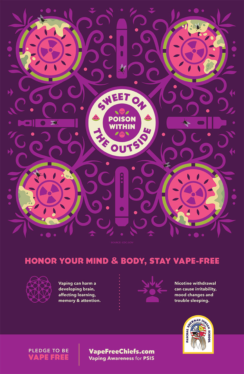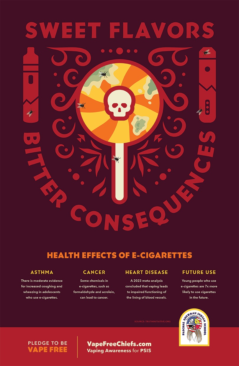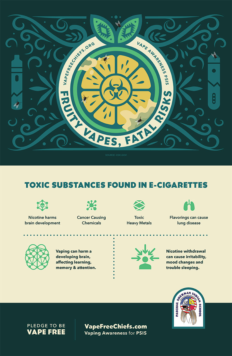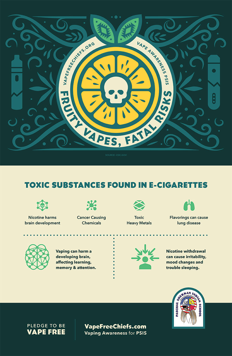 - Download the Vape Free Chiefs Posters below and email out to your friends, or print them to post at your class, at home, or on school boards.